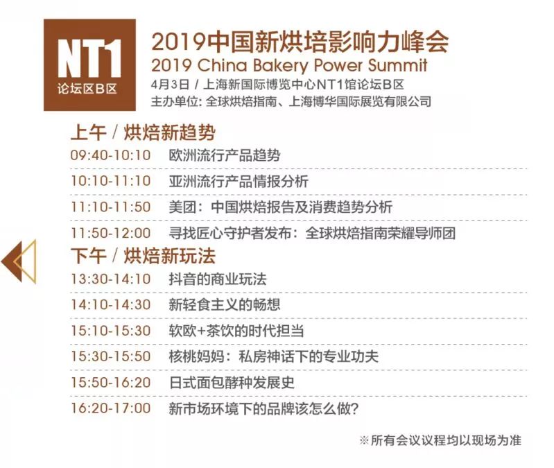 这是烘焙界的王牌影响力峰会,在数据为王、商业玩法至上的消费年代。想要了解欧洲、亚洲流行产品的趋势吗?想了解到美团更新的最新的中国烘焙报告吗?想与巴黎贝甜畅想新的轻食主义吗?想与从事烘焙行业45年的烘焙大师伊藤雅大共论烘焙事迹吗?新烘焙影响力峰会满足你的职业愿望清单!