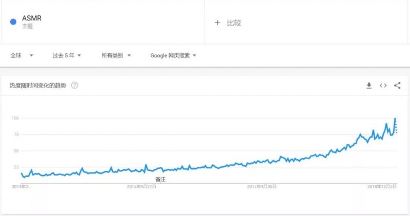 ASMR在全球范围内过去5年的搜索趋势不断上涨,