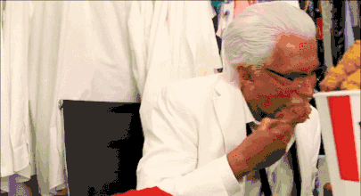 找来“肯德基上校”对着镜头提供各种声音刺激,