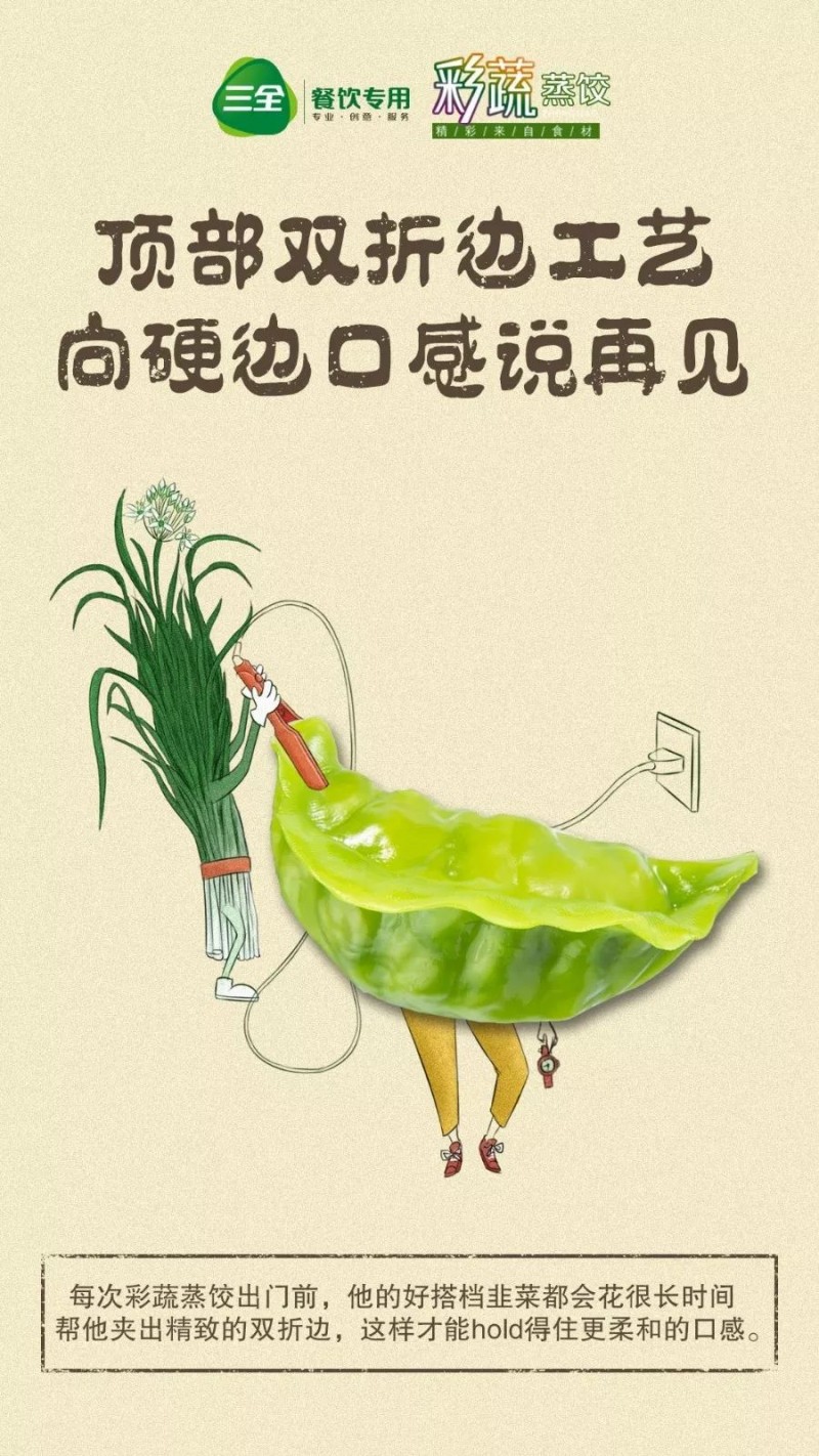 在工艺标准上,薄到看得见内馅的0.7mm超薄饺皮、大于65%的超多馅料360度填充、6mm精细切丁,辅以双折边设计柔和口感,处处高标准严要求,因为三全餐饮知道,只有这样的食物,才配得上大家对美味的期许,才不负众望!