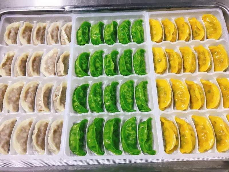 三款果蔬面皮的素馅彩蔬蒸饺,足够高的馅含量可以提供充足的营养;白色面皮的肉馅蒸饺,同样搭配玉米、莲藕、荠菜等富含膳食纤维的果蔬,让你的每一餐“轻”起来。