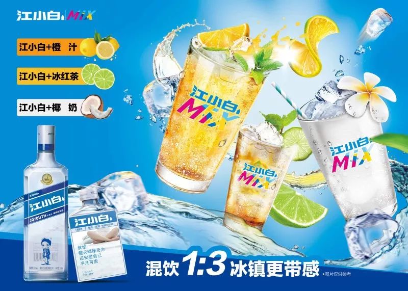△ “混饮”Mix 系列:度数可以更低,口味可以更丰富,任意一款江小白产品都可以作为混饮基酒,与多种饮品搭配使用。