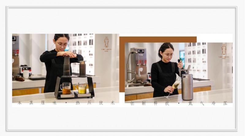 茶饮则从国外引进冷泡、冷萃、冷压、手冲及热压五大核心纯手工萃茶技术,打造十余款轻奢时尚茶饮。