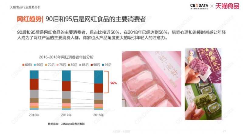 要想征服中国人的胃,除了好吃,还要健康,更要有好包装和好故事,跨界营销在网红产品中更有不少成功案例,CBNData《报告》显示,女性消费者是跨界食品购买的主力人群,和网红产品类似,新一线和二线城市是主要来源且大多数95后消费者,跨界新品正逐渐吸引消费者注意力。