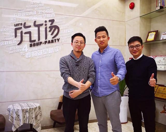 “吃个汤”创始人詹楚烽与餐饮界鹤九老师及小编合影
