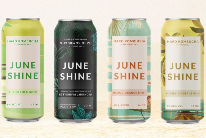 JuneShine的康普茶酒精饮料酒精度为6%,它拥有多达12种风味,包括: Blood Orange Mint(血橙薄荷)、Cucumber Mojito(黄瓜莫吉托)、Honey Ginger Lemon(蜂蜜姜柠檬)和Midnight Painkiller(午夜陶醉)等不同口味版本,使用的是16盎司罐装。