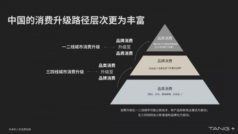 我们研究发现在消费升级这件事情上面,一二线城市和三四线城市有明显的差别,三四线城市明显在品类消费往品牌消费过度的阶段。海澜之家在上海普遍吗?非常少。前几年大家都在喊渠道下沉,原来在一二线的品牌,在三四线城市会立的住。一二线城市出现品牌往品质过渡,品牌不是那么重要。品牌响当当消费者会消费它,会重复购买它吗?不一定,消费者更在乎的是你给我带来什么价值,叫品质。