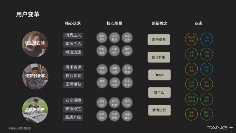 从人。因为人在变,所以人的核心诉求在变,诉求变,场景就在变,就会有强烈的诉求,我做了这样的形态满足了这样的机会,甚至自己建立了一个新的赛道。