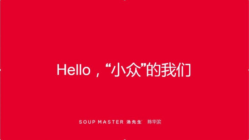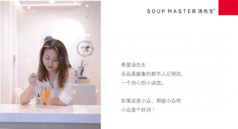 最后的最后,打个小广告,如果要给汤先生的品牌一个定义,我希望的是暖。汤先生品牌可以承诺,无论我们拥有多少家连锁门店,无论我们做的多大,我们在消费者心中就是小众品牌,我们永远是疲惫的都市人记住的一个用心小汤馆。