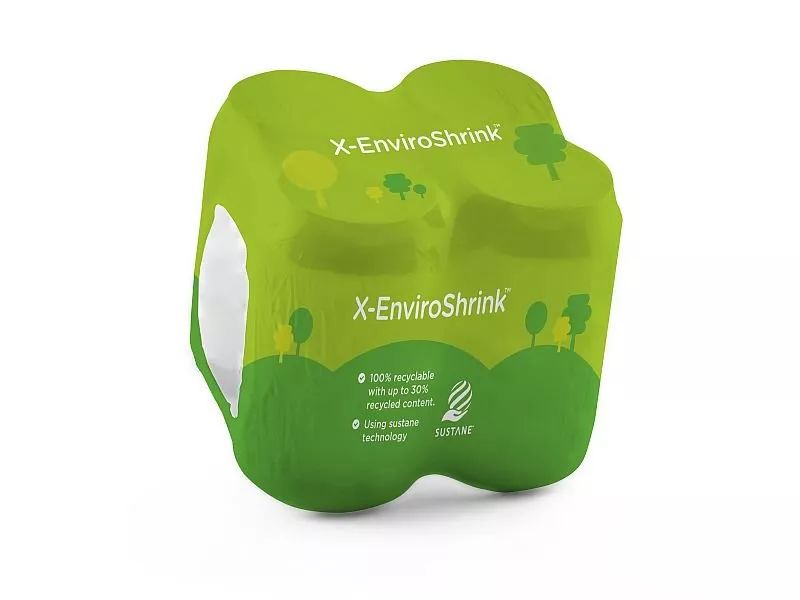 X-EnvironShrink是采用内部回收聚合物“Sustane”生产,可提供平面板和印刷版,适用于不同产品例如饮料罐、饮料瓶、罐头食物和箱等。此外,该集束收缩膜亦适用于支持成本效益和快速上市的高速包装方法。