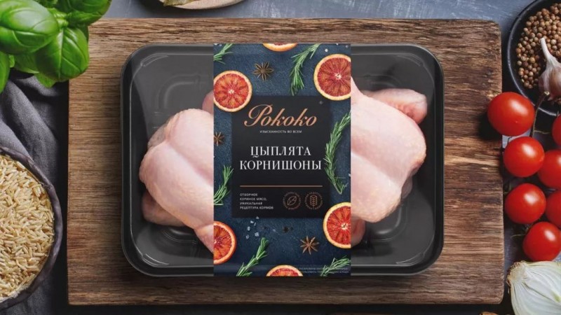 “Rokoko”品牌鸡肉产品用新的视觉包装概念,食品摄影成为重要的设计元素,在包装上创造烹饪原料的模式。这种食物包装由香料、水果和蔬菜围绕,唤醒买家烹饪的想象力。