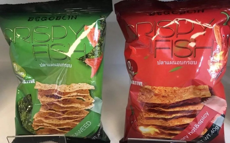 来自泰国Begoblin选用了南太平洋深海马鲛鱼为原料,与泰国辣酱和海苔混合,制作而成的鱼脆片,主打的是高蛋白、低脂肪,是休闲零嘴的好伴侣。