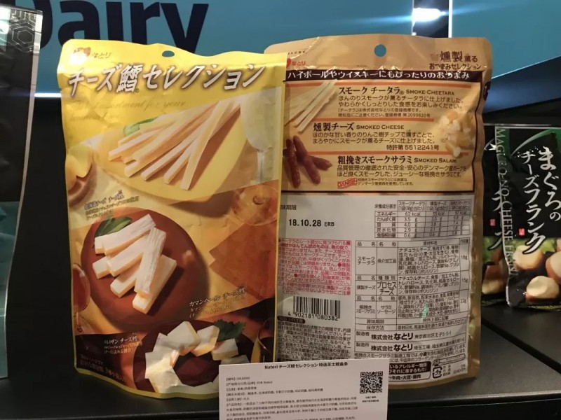 来自日本的Natori芝士鳕鱼条,鳕鱼条的咸味和奶酪的香甜中和,使得风味浓郁绵厚;还有该国的Goshoku的低盐烤虾干,从包装上来看,“减盐”二字非常显眼,确实与市场同类虾干相比,其盐分减少了40%,采用了独特的烘烤工艺,保留了虾干的原始风味,口感也更加香脆。