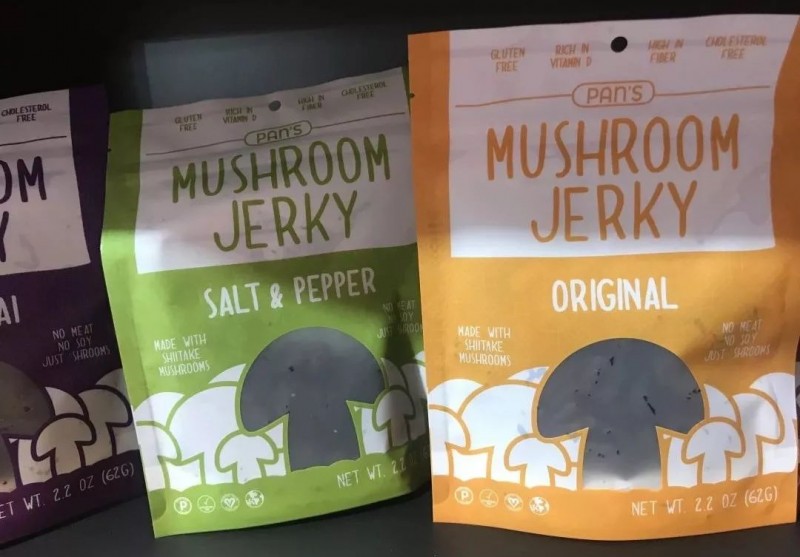 美国的Pan’s经过大量测试和调味,推出了蘑菇牛肉干,该产品纯素食,无麸质,有泰国风味、经典风味、海盐黑胡椒风味苹果木烧烤风味四种口味。