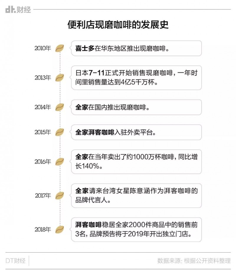 DT君整理了国内便利店咖啡的发展历程,从公开资料来看,比较出挑的是全家湃客。