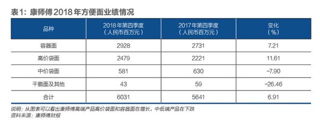中高端产品同样帮助康师傅的方便面业务走出了衰退。2018年,康师傅的方便面业务年营收239亿元,占总营收近40%,5.7%的方便面业务增速超过公司总业务2.9%的增速。