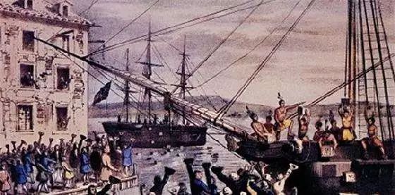 1773年11月,7艘英国大型商船运载首批低价倾销茶砖,浩浩荡荡开往美国。12月,货船抵达波士顿,后任美国第二任总统的约翰·亚当斯率领100多人,打扮成印第安人模样,攻占货船,把300多箱英国茶砖丢进海里。这就是著名的“波土顿倾茶事件”。