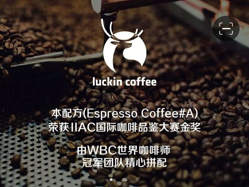 瑞幸咖啡APP内表示由 WBC (世界咖啡师大赛)冠军团队拼配烘焙