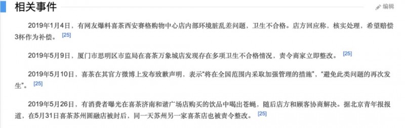 喜茶不可能每一杯的口味做到像星巴克的品控,折射出制茶的每个步骤和环节重度依赖人工,因此当直营门店数量持续扩张的过程当中小的失误概率也导致了数起食品安全事件的爆发。