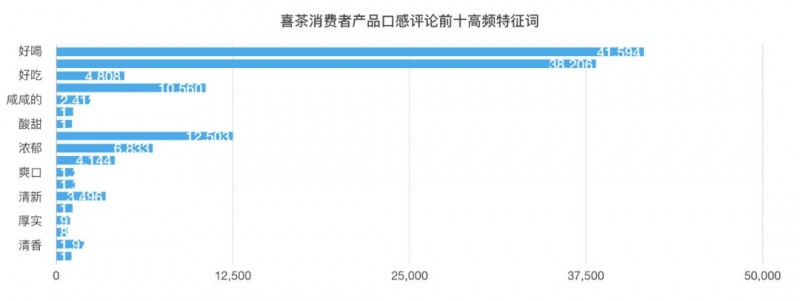从喜茶产品概况的评价高频词来看其中对于口感的描述更多,突出口感特色能够让消费者更愿意在社交媒体中针对口感来描述和评价产品从而能够反馈消费者对于产品的欢迎程度和接受程度。