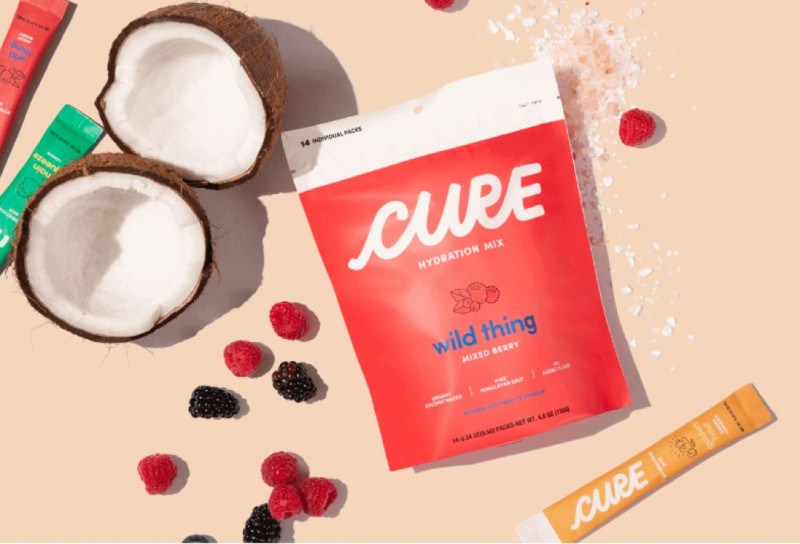Cure Hydration希望为消费者提供天然成分来源的有效水合作用,非转基因,不含人工添加剂、纯素食,满足清洁标签要求,每小袋包含14个独立包装,电解质含量是一般运动饮料的4倍。