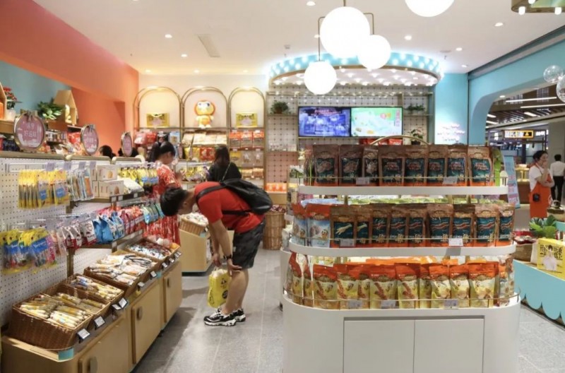 店中坚果炒货、果干蜜饯、即食海味、糖果等琳琅满目的休闲美食进一步给人们带来满足感。