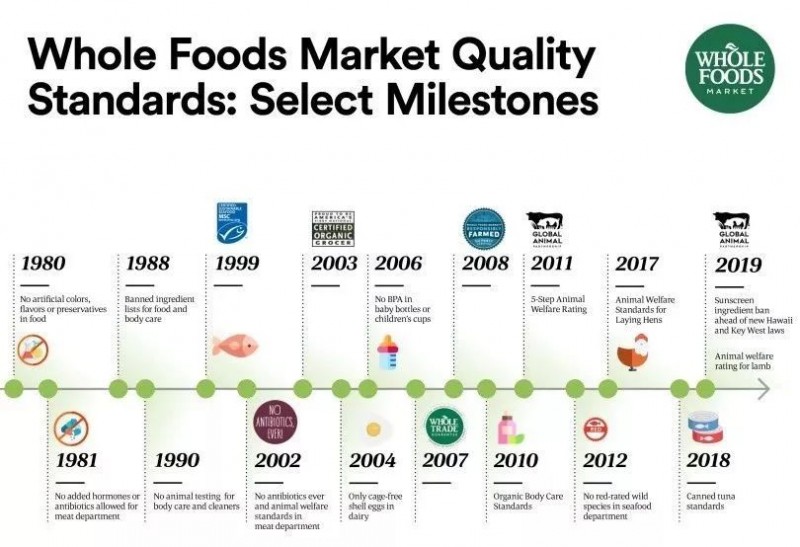 1978年,Whole Foods最初建于德州奥斯丁,最初注重食物质量,价格高,确立以出售有机果蔬为主的路线。