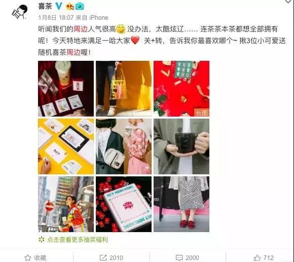 在品牌IP的加持下,喜茶尝到了周边好卖的甜头。喜茶的周边到底有多火,我们来看看: