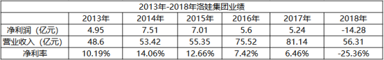 正是因为这些费用的增加导致洛娃集团的净利润从2015年开始下滑,截止2017年年底,该数据已经违6.46%,2018年甚至为负。