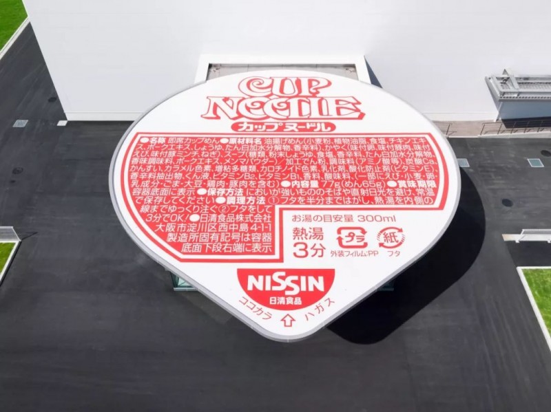 将日清工厂大门设计成了一个巨大的杯面