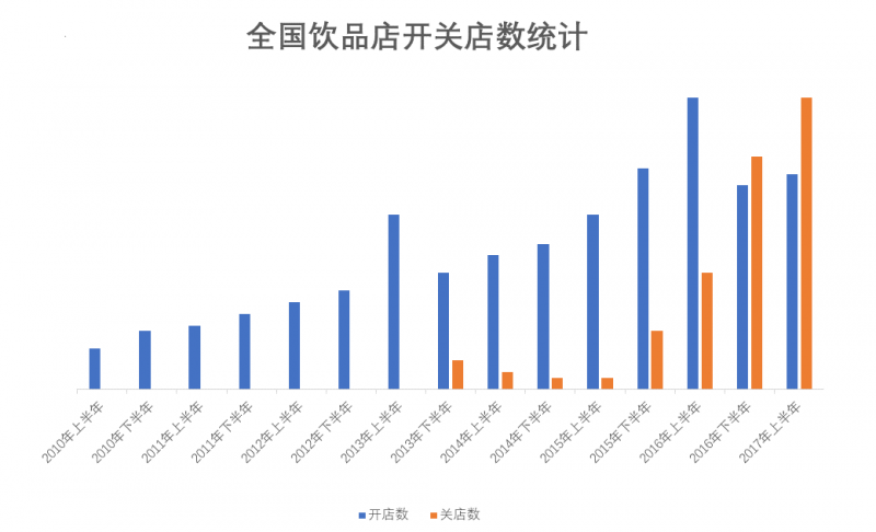 美团点评数据显示,2015年下半年开始,饮品店关店数逐渐增加,2017年上半年饮品店关店数超过开店数28%。每年关店和换品牌的现象延续至今,并成为行业常态。