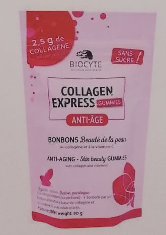 BiocyteCollagen Express膳食补充剂:30粒黑醋栗草莓西瓜皮肤美容软糖