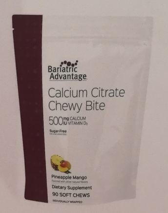 BariatricAdvantage柠檬酸钙耐嚼膳食补充剂500毫克