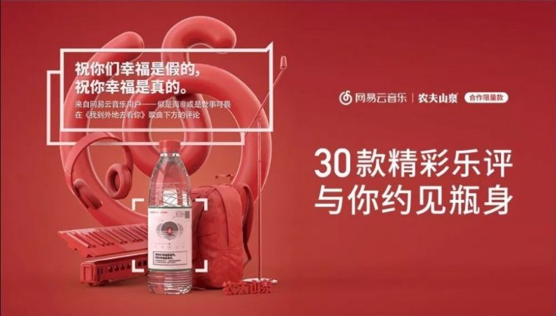 比如网易云的“乐瓶”跨界中,跨界妇孺皆知的快消品牌农夫山泉,使其快速渗透到了农夫山泉的线上线下渠道,音乐的力量蔓延了农夫山泉庞大的用户群体。