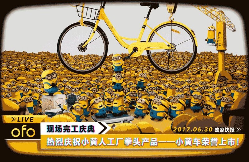如2017年6月,“小黄人工厂”的H5刷爆朋友圈,这是一次ofo和小黄人IP的跨界营销。此前,ofo品牌升级从“ofo共享单车”更名为“ofo小黄车”,致力于为全球用户提供更便捷、更快乐、更轻松的骑行体验,打造年轻、好玩的品牌形象。