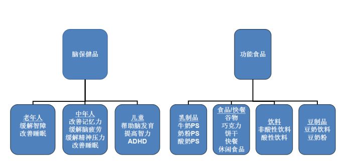 目前PS主要应用在大脑保健品和功能食品中,作为儿童、中年人、老年人的脑部健康都提供了很大的帮助。