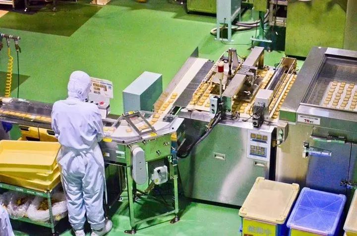 白色恋人的生产线还有一大特色就是每一道工序都整齐有序,这也是大部分日本企业工厂的特性,车间工人熟练给每一块饼干加上巧克力,机械则井井有条制作着美味的饼干。