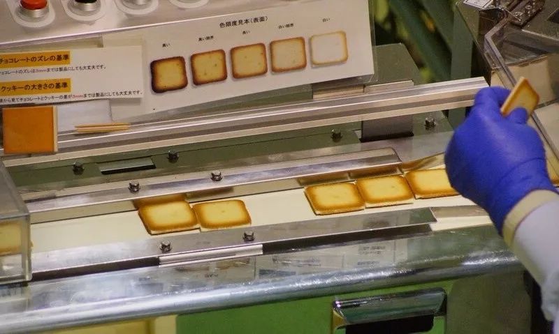 为了保证白色恋人每一块都同样好吃,工作人员会根据每天天气的温度、湿度的不同,从巧克力的原料管理到烤箱的温度都会随之调整。