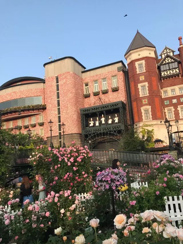 点缀着各色玫瑰的英式庭园,一个工厂里却有大片的花园。