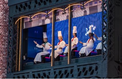每逢整点伴随钟塔的自动报时,机器人偶们表演的“巧克力嘉年华”如期上演。