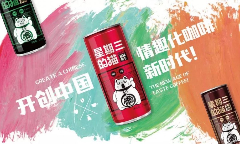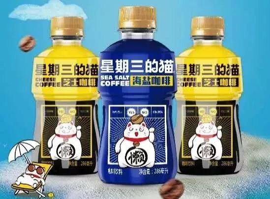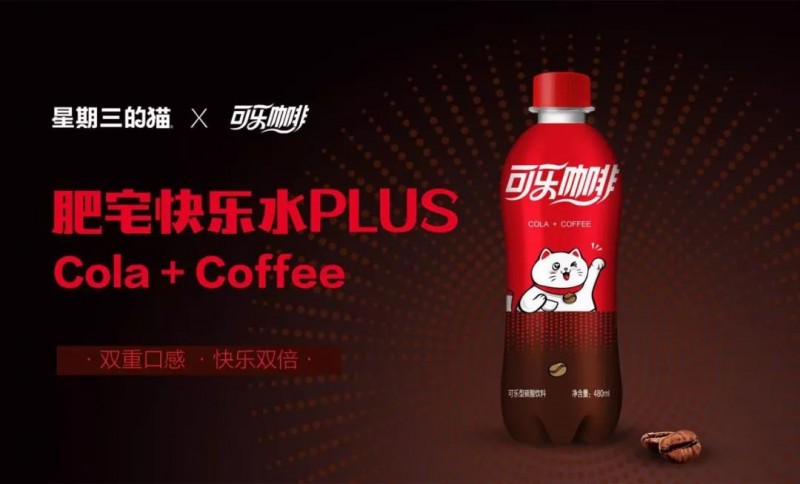 作为国内首家大胆结合肥宅文化与猫文化的品牌,星期三的猫将“肥宅快乐水”升级,重磅推出新品可乐咖啡。2019年3月,星期三的猫可乐咖啡正式亮相,被定义为“肥宅快乐水PLUS”,刺激的碳酸饮料+浓郁的咖啡,究竟是咖啡味可乐,还是可乐味咖啡?看心情!