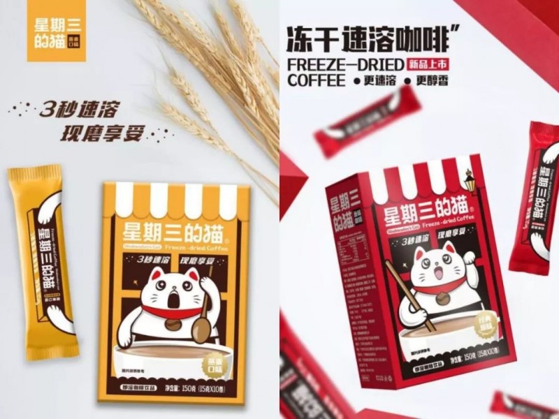 一个IP带动一个品类,进而带动整个品牌系列的发展。星期三的猫多样化的产品不仅满足了消费者不同场所的需求,也是消费者对咖啡消费的深入开发。