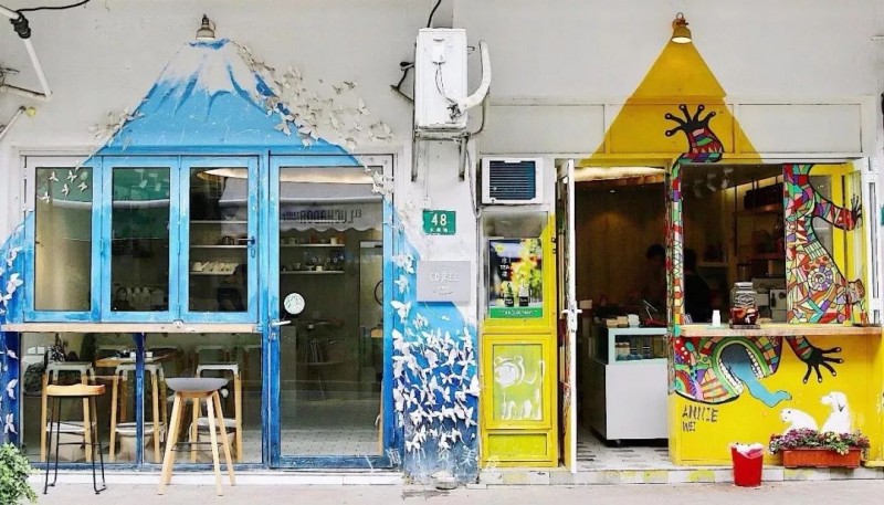 活泼明媚的黄色、蓝色富士山门头,是永康路上一对颜色抢眼的CP,这就是让人走过路过都想多看几眼的人气泡茶店“Tea Funny”!