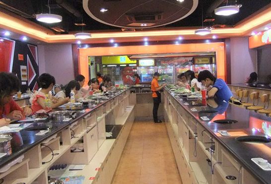 此外,呷哺呷哺的吧台呈U型,这很大程度上节省了门店空间,让餐厅能够容下更多顾客。同时,顾客的集中让每个服务员可同时服务10-12名顾客,大大节省了人力成本!