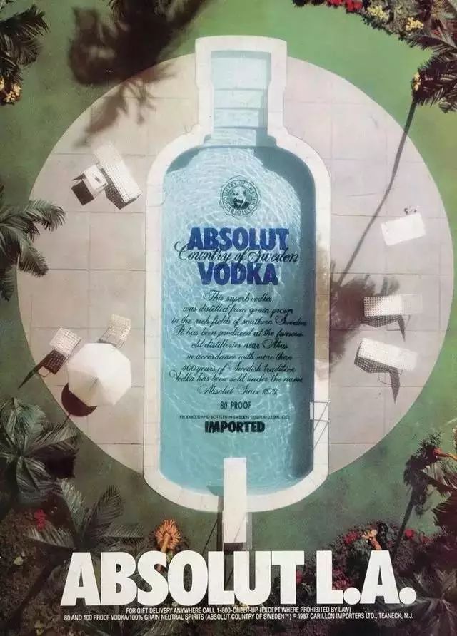 绝对城市系列:1987年,“绝对洛杉矶”海报横空出世,用城市的标志性建筑与「绝对伏特加」的酒瓶相结合,没料到“绝对城市”系列为广告史贡献了一大经典之作。