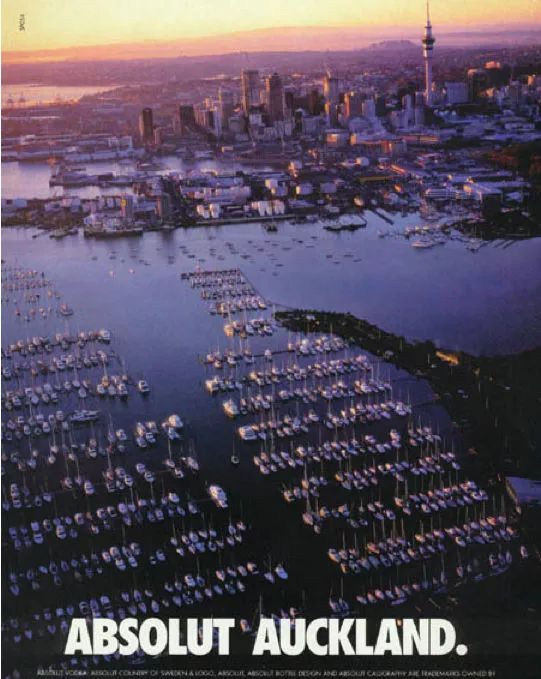 “绝对奥克兰”:港口停泊的船只构成了伏特加的样子
