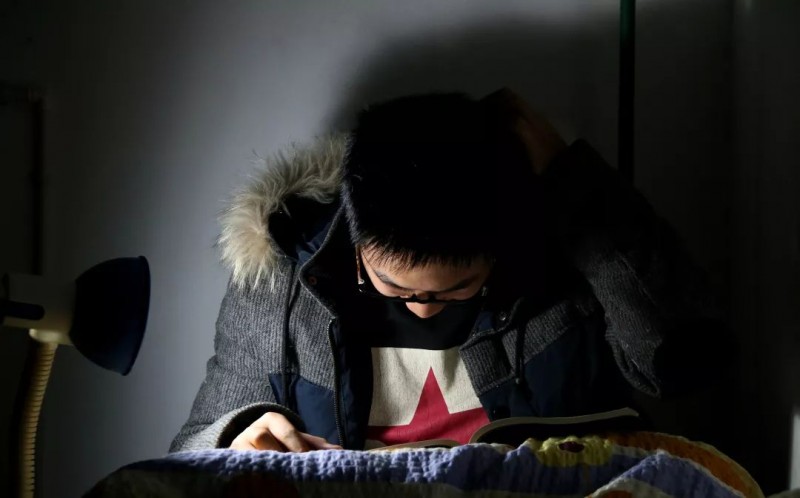 2015年3月20日,安徽安庆,凌晨,安庆师范学院的学生依然坐在床上看书