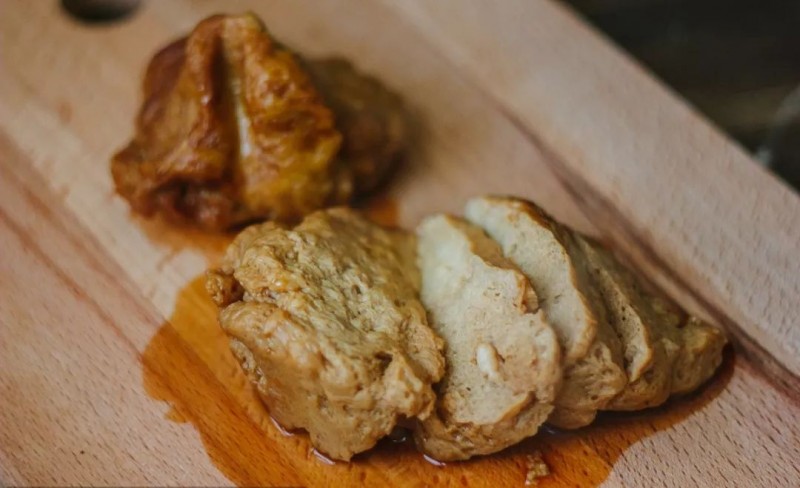 2013年的那块天价牛排,是从活体动物身上提取细胞,然后在培养基上进行增殖的“试管肉”,是有如上帝般的艺术创造。而市场主流产品,是基于植物蛋白、氨基酸等制造的,模仿真肉质感的“素肉”。