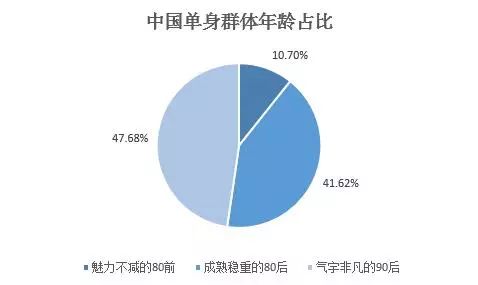速途研究院《2018年中国单身人群消费行为调研报告》认为,单身群体中90后占比高达47.68%,正式接棒80后成为单身的主力军。