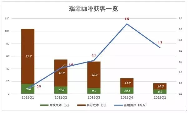 在最近的公开场合,瑞幸宣称:从2018年到2019年,单位获客成本从103元下降到16元,而单杯咖啡成本从28元人民币降至2019年一季度的13.3元。